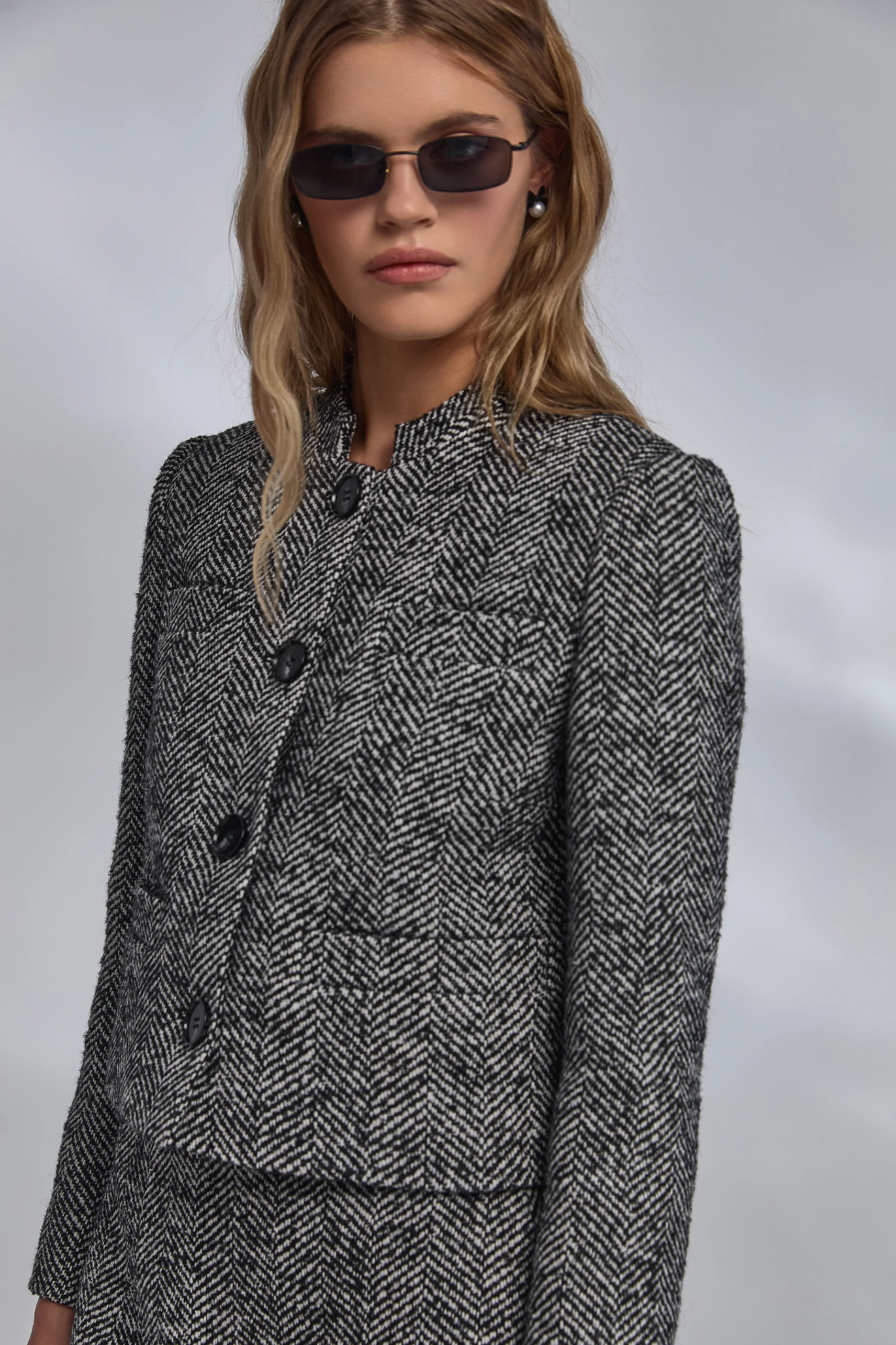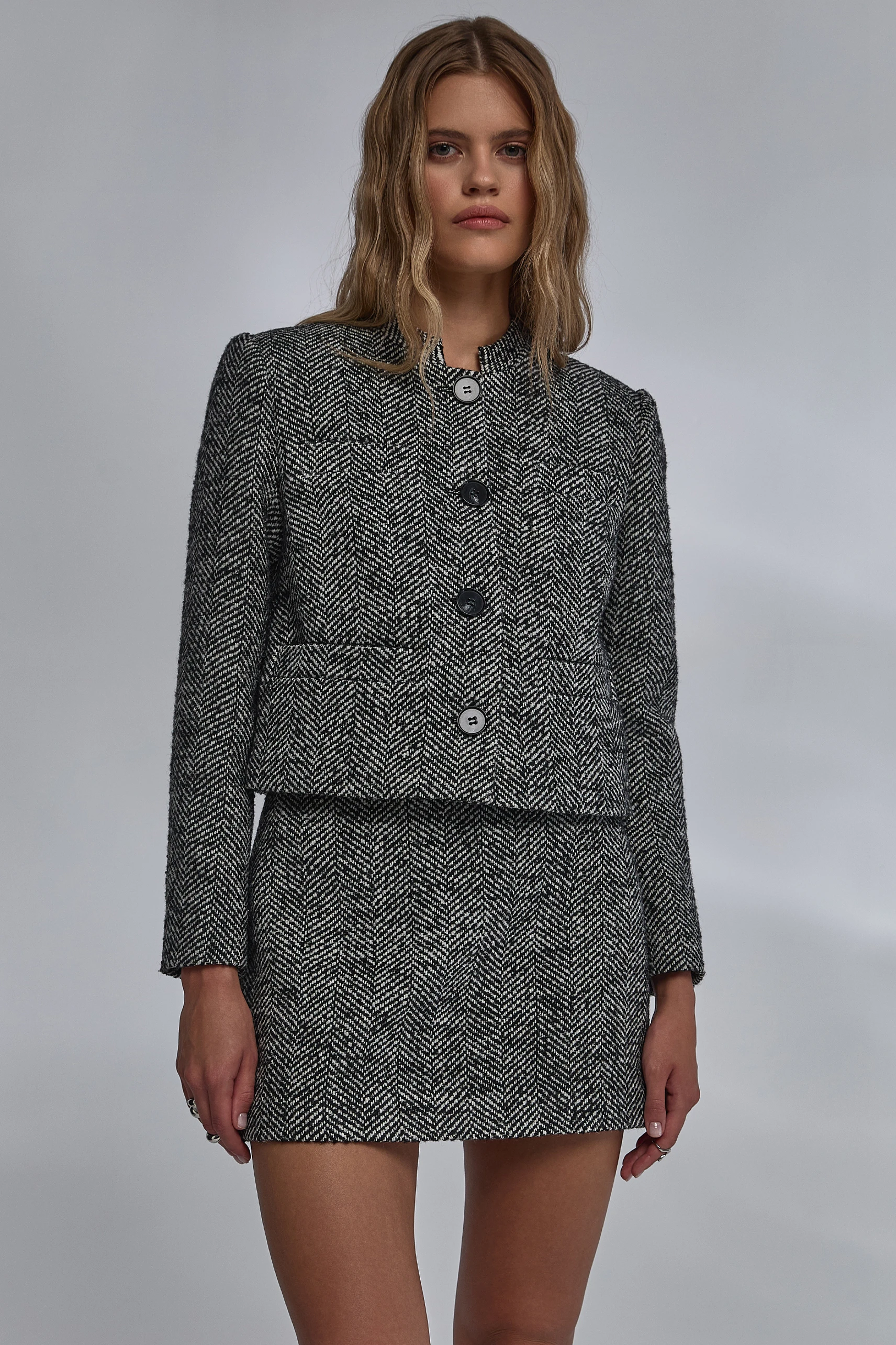 Артикул: w-suit-tw/aut25/-xsВеликолепие классики в современном прочтении: твидовый дуэт с всегда актуальным узором «ёлочка». Каждая деталь подчеркивает изысканный стиль и безупречный вкус. Узор завораживает игрой света и тени, усиливает глубину цвета и характер образа. Совершенство кроя проявляется в каждой линии. Жакет с воротником-стойкой изящно структурирует линию плеч, поддерживает чистую вертикаль борта и создает безупречный силуэт.