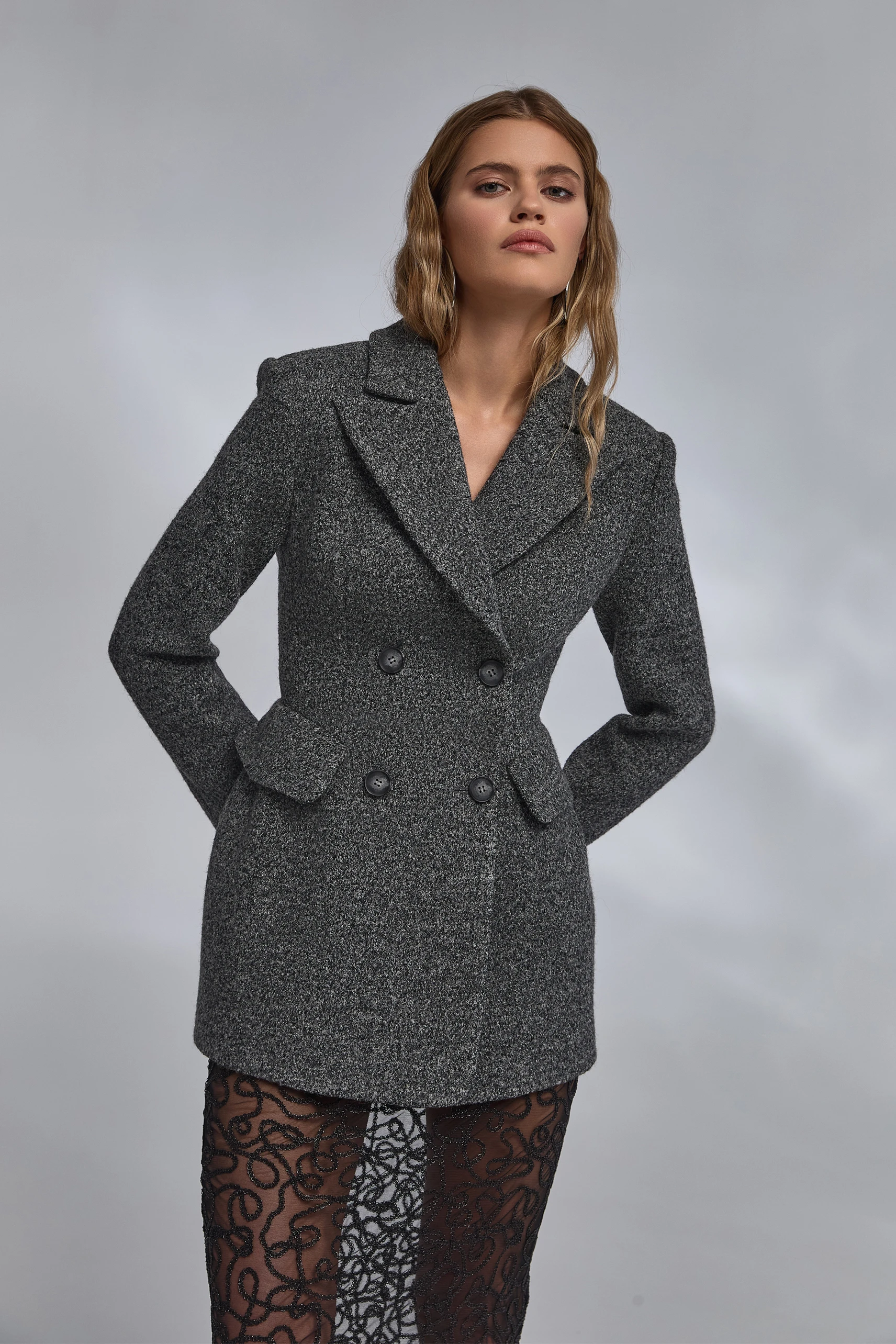 Для вечернего выхода сочетайте с нашим классическим двубортным жакетом, чтобы создать эффектный контраст фактур. Для идеального образа подойдут лаконичное боди, строгая сорочка или изящный корсет — они подчеркнут воздушность кружева и добавят силуэту структурности.